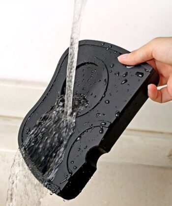 Diseño simple de color negro, la alfombrilla de café es antideslizante, resistente al desgaste y duradera, gran ayudante para aprisionar café. Hecho de material de silicona de grado alimenticio, la alfombrilla de café es duradera y práctica.