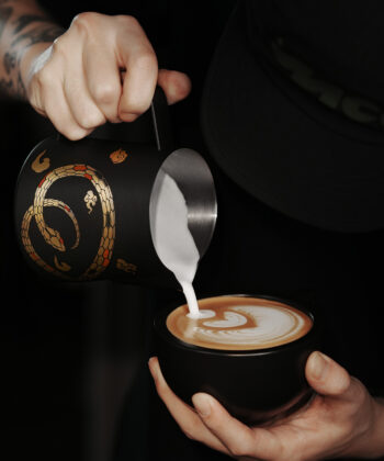 No es solo una herramienta para texturizar leche, es una pieza de colección diseñada para baristas que buscan el control absoluto y una estética inigualable en sus vertidos de Arte Latte.